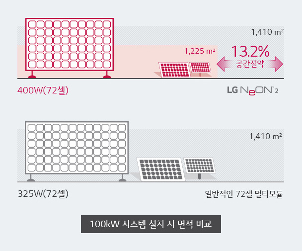 72셀 멀티 모듈과 비교하여, LG NeON™ 2는 보다 높은 출력을 제공합니다.
