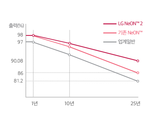 LG는 NeON™ 2에 더욱 강화된 출력 Warranty를 제공합니다.